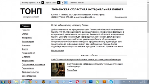 На официальном сайте Тюменской областной нотариальной палаты открыта специальная версия для слабовидящих.